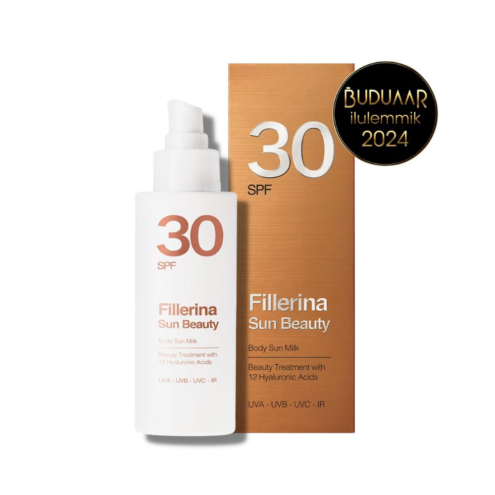 Kas tõesti on päevitades võimalik nautida ka naha samaaegset noorenemist? Meie ütleme – JAH! Fillerina Sun Beauty ühendab endas nii kaitse- kui ka ühe tõeliselt mõnusa iluhoolitsuse omadused. Need siidise konsistentsiga kreemid sisaldavad naha sügavaks täitmiseks, kortsude silumiseks ja niisutamiseks 12 erineva molekulmassiga hüaluroonhapet. Naha naturaalse noorusliku välimuse säilitamiseks on Fillerina päikesetoodetesse lisatud ka vastavad ained, mis takistavad nii kollageeni kui ka elastiini molekulide lagundamist. Ekstra noorendavat efekti aitavad saavutada 3 kollageeni ja 2 elastiini molekuli, mis tihendavad nahka ning muudavad selle taas elastsemaks.